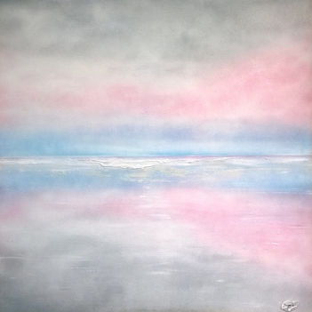 La simplicité de la composition : une bande colorée de sable ou une bande de mer de une grande bande ciel. J’exprime plus une évocation de l’espace que la représentation de celui-ci..